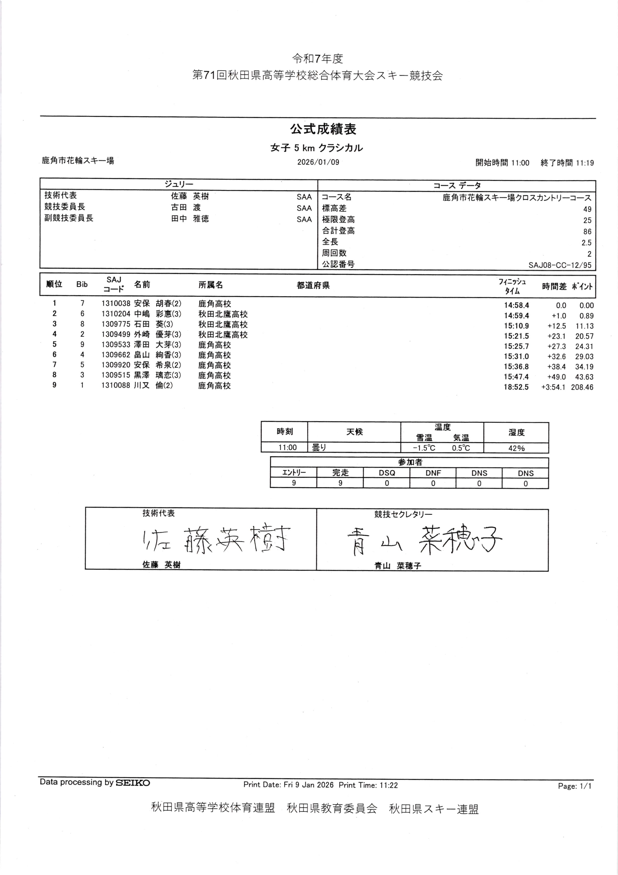 第71回秋田県高校総体スキー競技大会 女子クラシカル 男子クラシカル 日程(PDF) |